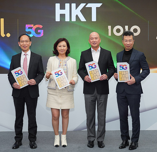 Helping us mark this truly auspicious occasion were Susanna Hui, Group Managing Director of HKT, together with Peter Lam, Managing Director of HKT Engineering; Tom Chan, Managing Director of HKT's Commercial Group; Bruce Lam, Managing Director of CSL Consumer Mobile, announce 5G service to be launched on April 1.