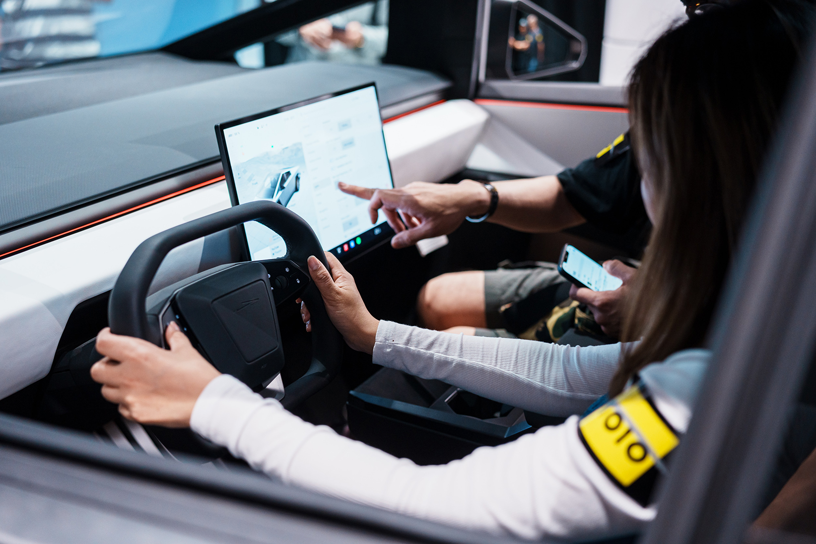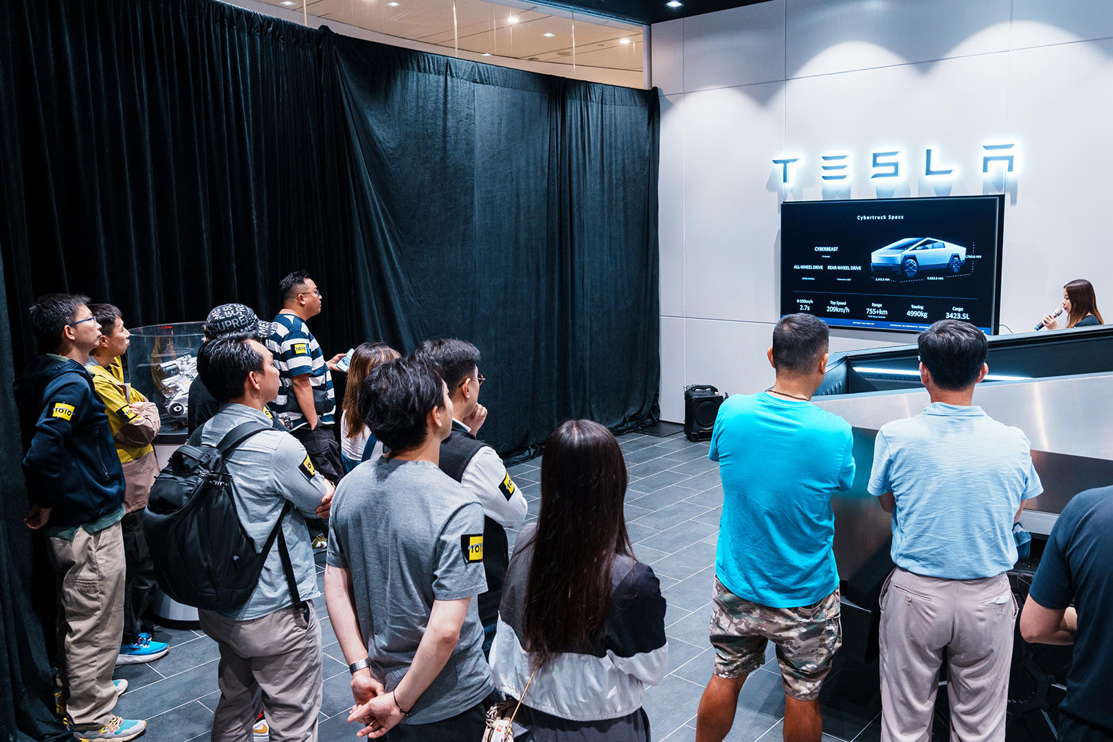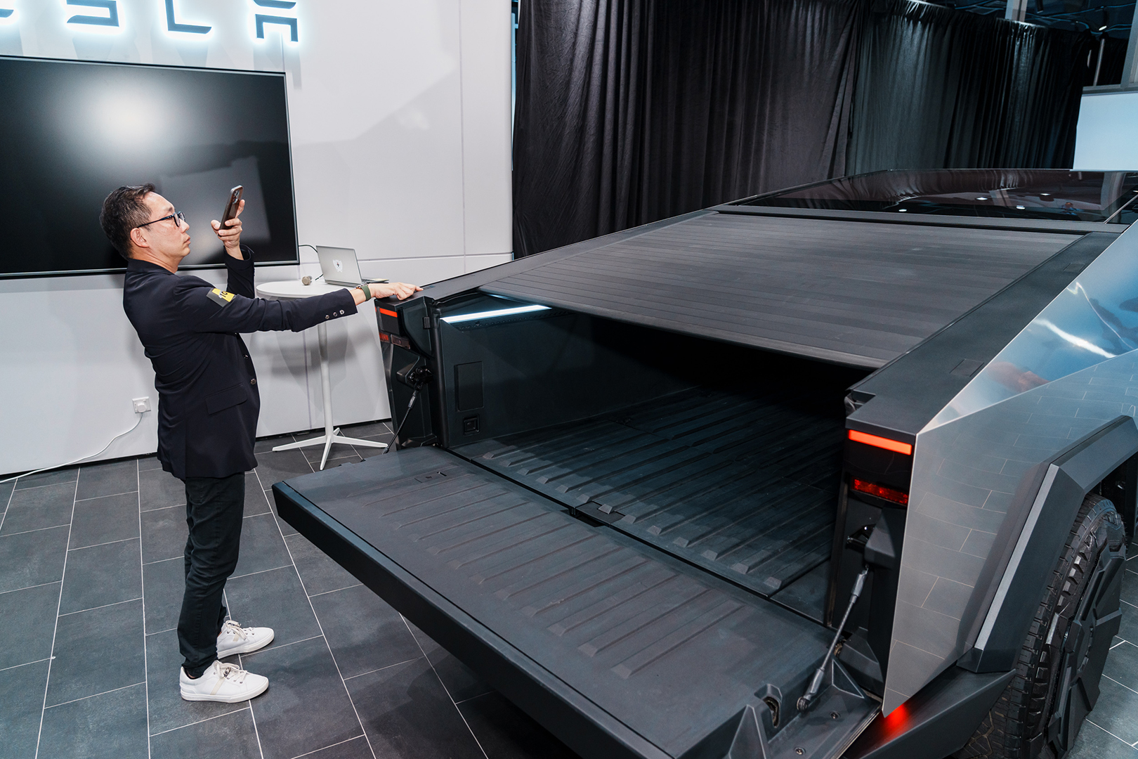 1O1O 日前誠邀特選客戶參加 Tesla Cybertruck 私人展覽,近距離接觸 Tesla 劃時代破格鉅作。 客戶在預覽活動中,親身感受專為各種地形設計的科幻感車身外觀及特大載物容量,並先行試坐配備先進功能的寬敞車廂,突破大眾對傳統汽車的想像。